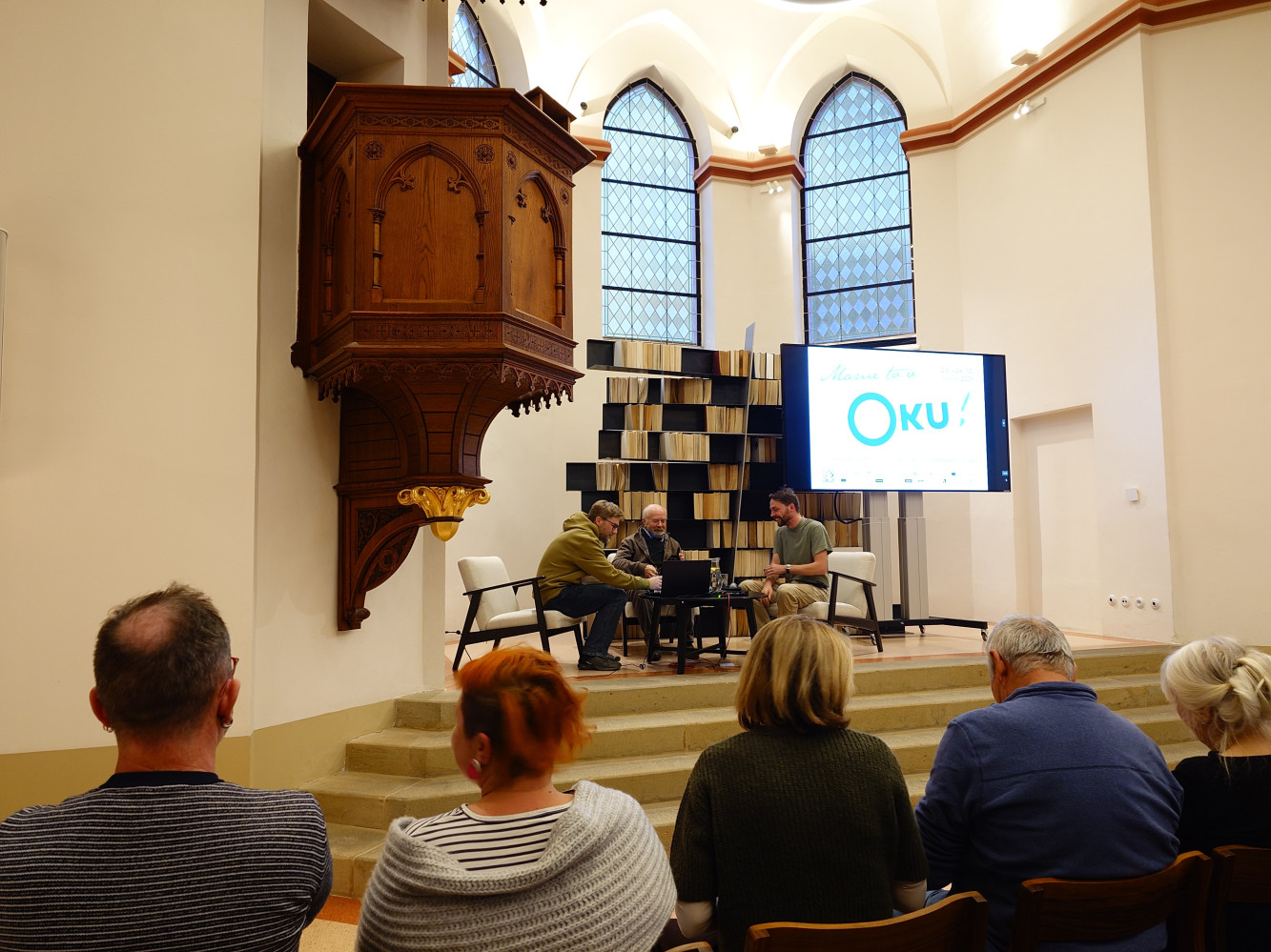 Akce, která probíhala v olomouckém Červeném kostele v rámci festivalu ÖKU, se za Lubavii účastnili náš předseda Jindra Machala, historik Jiří Glonek a ředitel festivalu ÖKU Michal Urban.