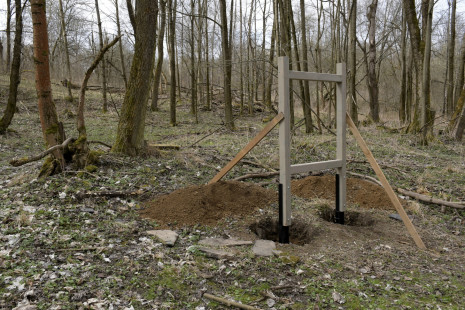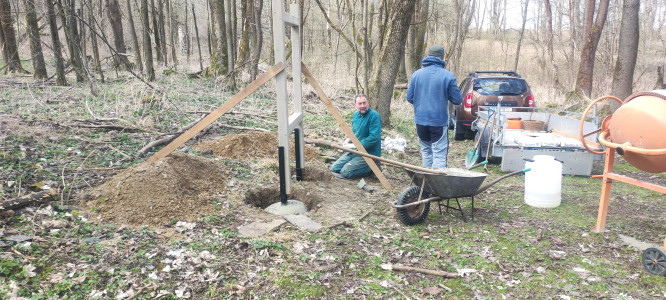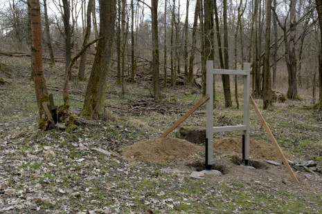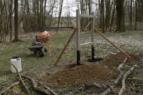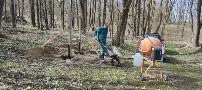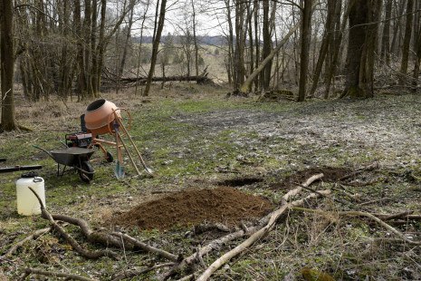 Místo na infoceduli bylo vytyčeno a Pavel se pustit do usazení rámu a betonování patek. Soňa, Víťa a Jirka se na Novou Ves přemístili po skončení spolkové schůze a pustili se do celkového úklidu, čištění cesty k památníku a okolí, i místa bývalé kaple. Došlo i na hrábě. Příští víkend pokračujeme, bude to chtít motorovku na velké spadlé kmeny, poštelovat kachle u památníku a ten také očistit.