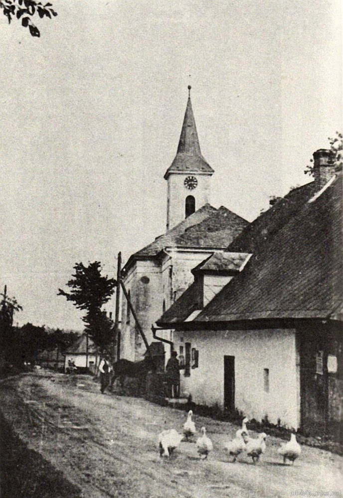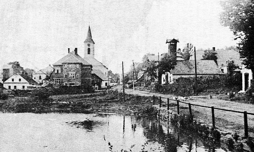 K západu orientovaný farní kostel sv. Máří Magdalény, původně obklopený hřbitovem, stával na místě starého kostela, tj. na vyvýšenině v západnější části obce. Patrová budova č. p. 136 v blízkosti kostela, pocházející z let 1880−1882, patřila obecné škole. Výrazná budova dědičné rychty č. p. 13 připomínaná již k roku 1676, stávala blíže k prostřednímu ze tří rybníků. Do jejího areálu patřila i zděná kaplička.