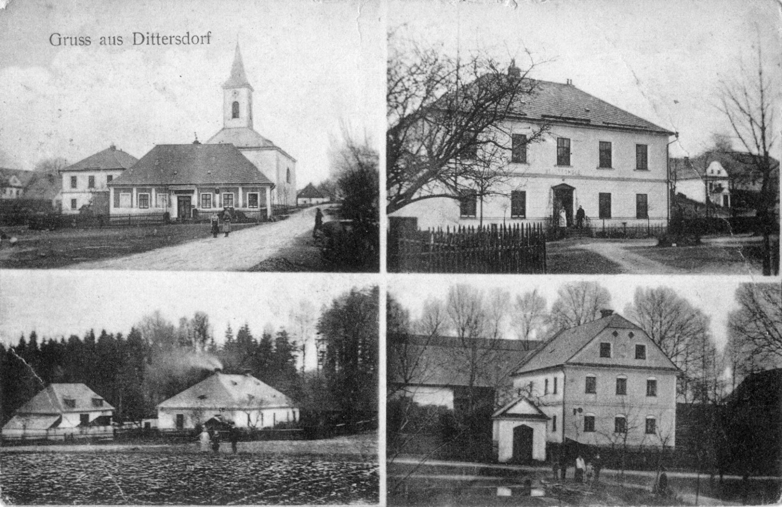 4. Jako památník na zaniklou obec obnovila v roce 1993 rodina Wilhelma Sellnera z Grünbergu v Hesensku kamenný nadační kříž z roku 1873 a opatřila ho dvěma nově osazenými pamětními deskami s českým a německým textem, ve kterém se uvádí též domnělé založení obce, tj. rok 1334(!). Nový památník byl posvěcen 1. května 1993 za účasti mnoha rodáků. Kříž je osazen na dvoudílném podstavci hranolového tvaru, jeho dolní část je v nárožích okosena a členěna půlkruhově klenutými nikami, ve kterých je reliéfní hlava P. Marie a nápis IHS a MARIA. Zúžená část podstavce má nakoso postavené pilastry. Původní nápis: Gewidmet / von / Wenzel / Pater / und Gemeinde / Diettersdorf / 1873