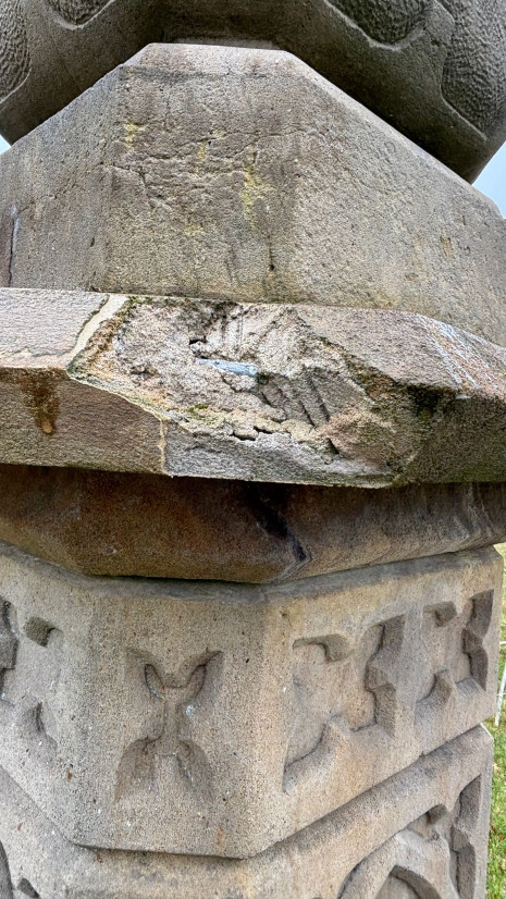 Restaurátoři se tento podzim věnují také opravě drobných poškození kříže.