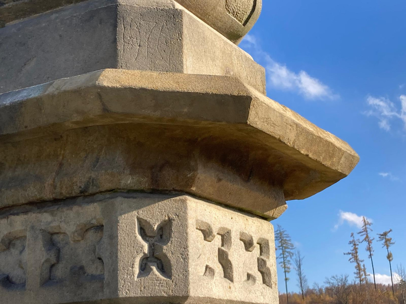 Restaurátoři se tento podzim věnují opravě drobných poškození kříže.