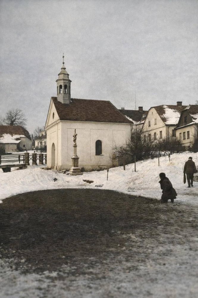 Uchvátily nás fotografie, které architekt udělal ve spolupráci s AI. Dojemný je pohled na "polorozpadlou" kapli - ve stavu, v jakém je dnes možné vidět kostely z jiných zaniklých obcí ve VVP Libavá, např. Barnov nebo Jestřabí. Nepřivazská kaple zřejmě postupným chátráním neprošla, mnohem pravděpodobnější je, že byla srovnána se zemí s dalšími domy v obci, podle leteckého snímkování mezi lety 1966 až 1971.
