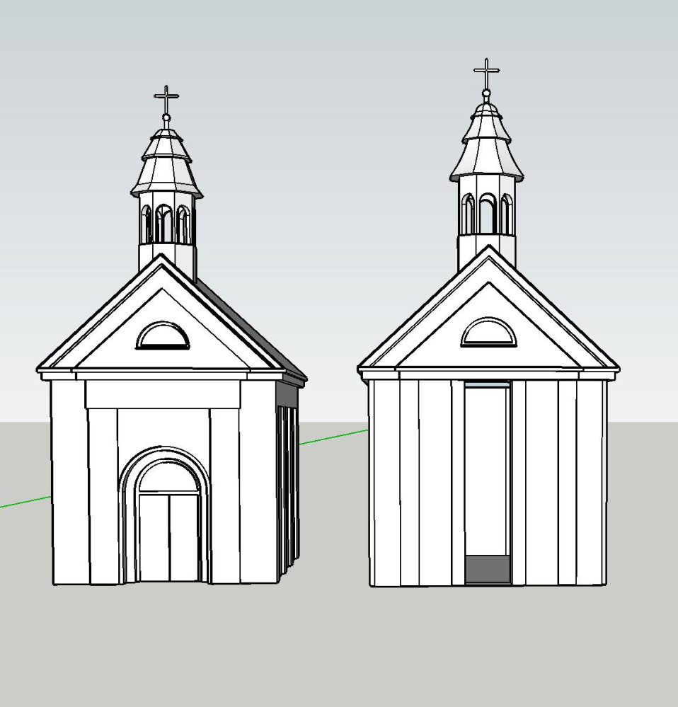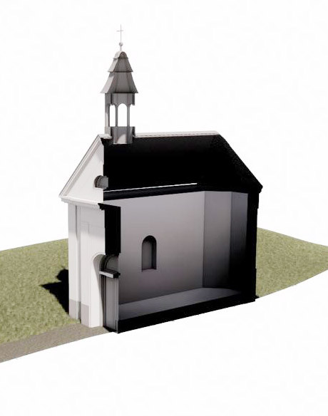 Pan Brych vytvořil model kaple, jednotlivé pohledy a řezy kaple a také její 3D model.