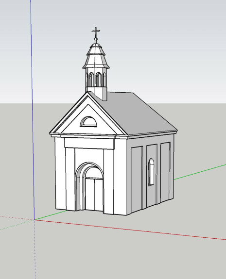 Ohledně modelu ve 3D jsme oslovili architekta, Ing. arch. Ondru Brycha, jaké by byly možnosti zpracování - přece jen není ohledně kaple mnoho podkladů a jejich kvalita neumožňuje dobře rozpoznat detaily. I původní rozměry jsou známy jen rámcově, v řádu metrů.