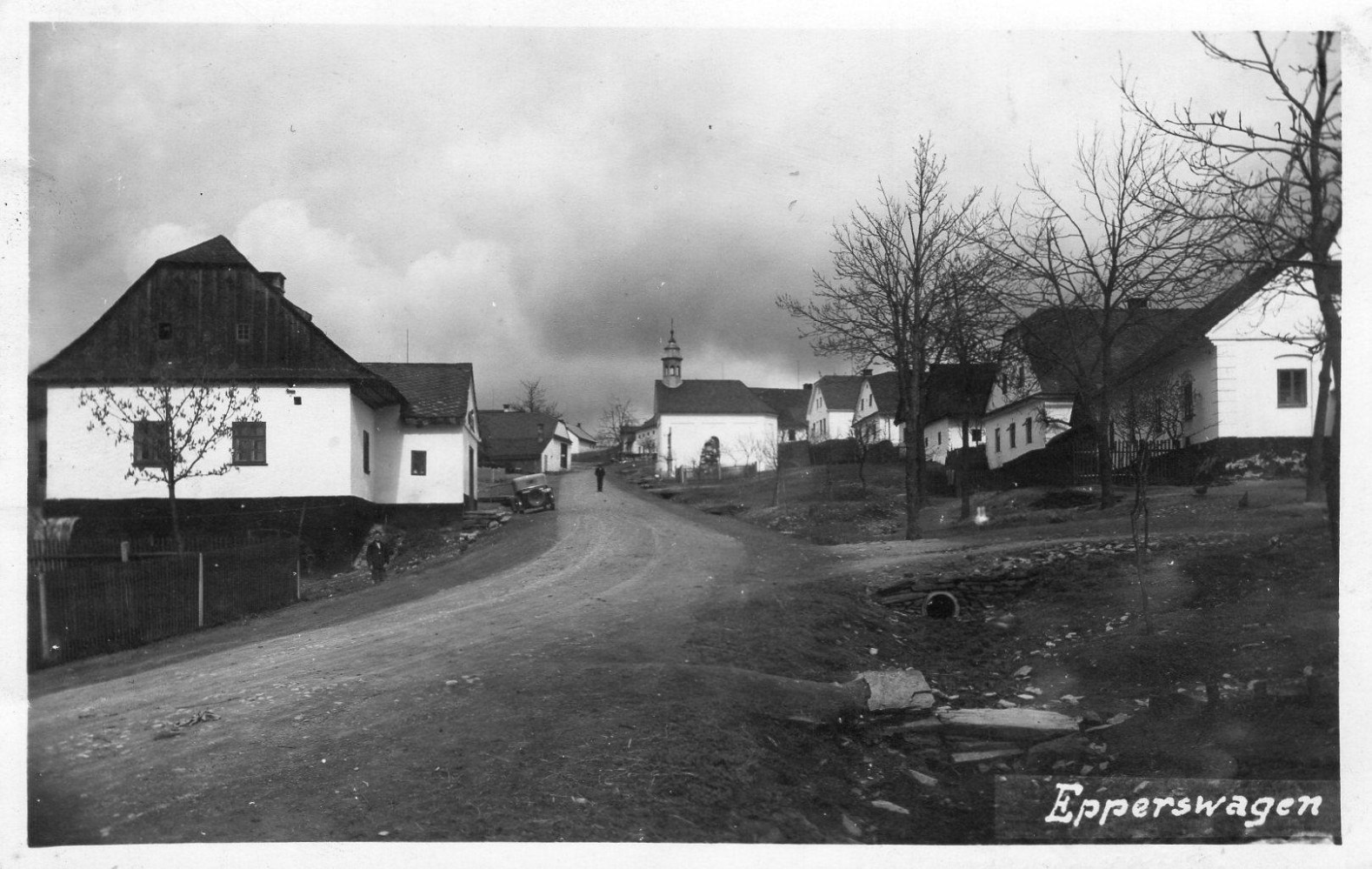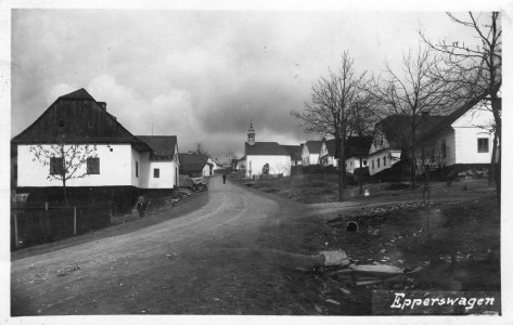 Fotografie centra obce (bez úprav): PADEVĚT Jiří: Zaniklé obce: Katalog sídel zaniklých nebo částečně zaniklých od roku 1945 na území dnešní ČR. Academia 2025. Svazek III. ISBN 978-80-200-3675-9.