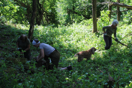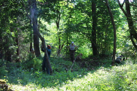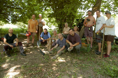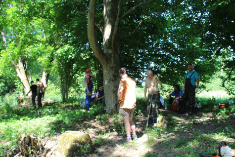 První letošní společná spolková akce se konala 19. června na milovanském hřbitově. Jejím cílem bylo odstranění náletových dřevin s prostoru bývalého hřbitova, kolem zbytků kostela sv.Kateřiny z r.1730. V první fázi bylo nutné vytvořit přístupovou cestu k požárnímu pásu kde jsme měli zaparkovaná vozidla. Pak již následoval postupný zásah od východní strany z vyřezáváním náletových keřů a dřevin. Bylo také nutné určit místa kde budou dřeviny ukládány. Počasí nám sice přálo ale velmi vysoká denní teplota nám bránila v rychlejším postupu a také nutnost častých pitných přestávek nás brzdila. V každém případě se nám podařilo vyklestit jistou část plochy a bude jistě nutné naplánovat alespoň dvě další akce k zdárnému dokončení údržby. Netradičně jsme měli tuto akci spojenou s občerstvením v podobě kabanosu s chlebem, hořčicí, pivem a nealko nápoji a také s milou návštěvou revírníka z Podštátu i s jeho manželkou, kteří projížděli kolem. Po družném rozhovoru i posilněni občerstvením jsme ještě pokračovali v práci, ale zanedlouho bylo znát že únava v parném dni vykonala své a bylo nutné akci ukončit i když někteří členové ještě pokračovali v údržbě svých přidělených pietních míst. Všem patří velký dík za vykonanou práci v nelehkém terénu a snad se příště opět sejdeme i v hojnějším počtu při pokračování a dokončení údržby tohoto pietního místa, které si tuto naši péči jistě zaslouží.