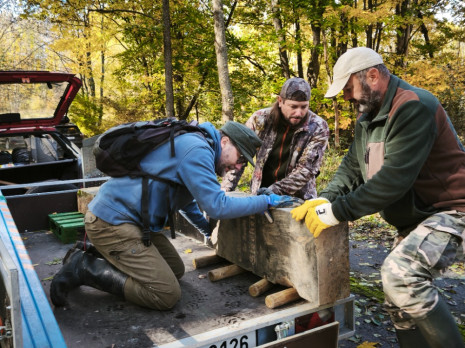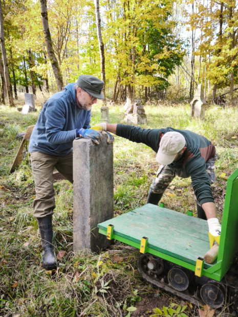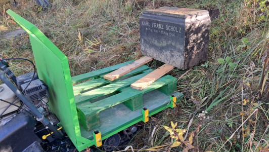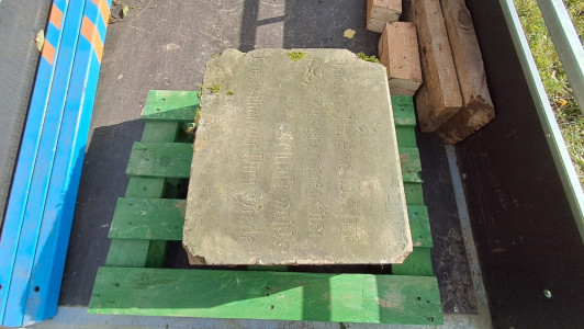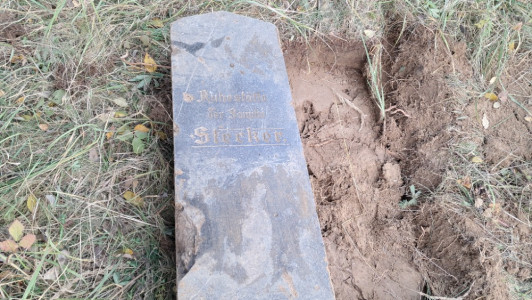 Brigáda byla svolána k převezení fragmentů zpět na čermenský hřbitov. Vyprostit náhrobky, naložit je a přemístit byla opravdu náročná práce. U druhého fragmentu až po jeho vyzvednutí ze země a otočení bylo možné přečíst, že patřil rodině Stecker. Třetí a nejmenší fragment je z pískovce, s německým textem (viz foto).