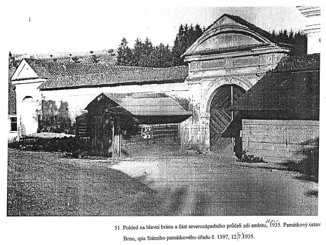 O záměru jsme ještě na podzim minulého roku 2023 začali jednat s "památkáři" ve Šternberku, a také na jejich doporučení jsme oslovili bratry Kořenkovy. Jejich firma BALDOMERUS ze Šternberka má s oblasti sakrální architektury bohaté zkušenosti a za sebou mnoho úspěšných realizací. Oslovili jsme je a ukázalo se, je pro ně reálné zakázku realizovat tak, aby brána mohla být instalována ještě před svatoanenskou poutí v tomto roce. Pánové Miroslav a Martin Kořenkovi připravili návrh, který byl vzdušný a svým tvarem symbolicky odkazuje k původní bráně. Ta byla dřevěná a chráněná štítem se stříškou (viz foto). Vzhledem k tomu, že štít již není a nový se stavět nebude, aby průjezd zůstal volný i pro velkou techniku (např. jeřáb), nová brána ze dřeva (i vzhledem k povětrnostním podmínkám zde) nebyla shledána vhodným dlouhodobým řešením.