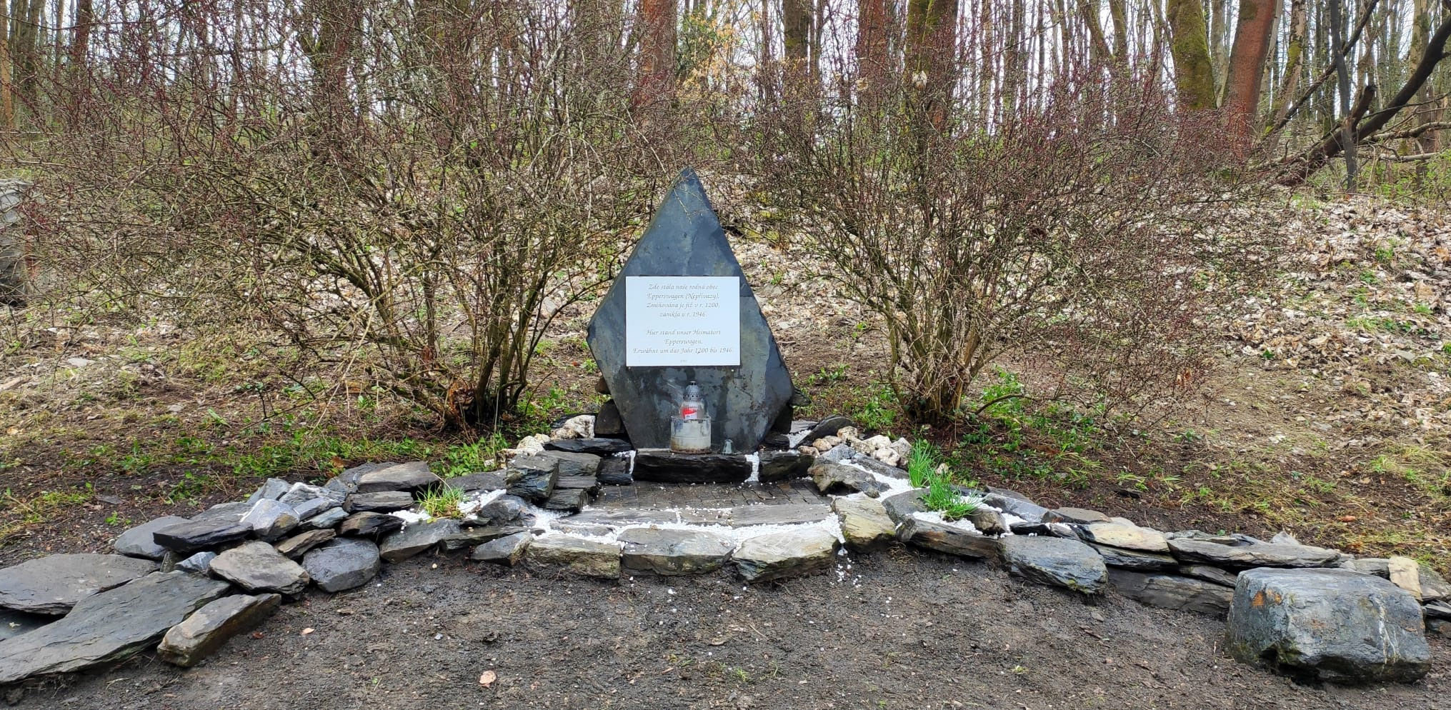 Hier stand unser Heimatdorf Epperswagen. Erwähnt um Jahr 1200 bis 1946. // Zde stála naše rodná obec Epperswagen (Nepřívazy). Zmiňována je již v roce 1200, zanikla v roce 1946.