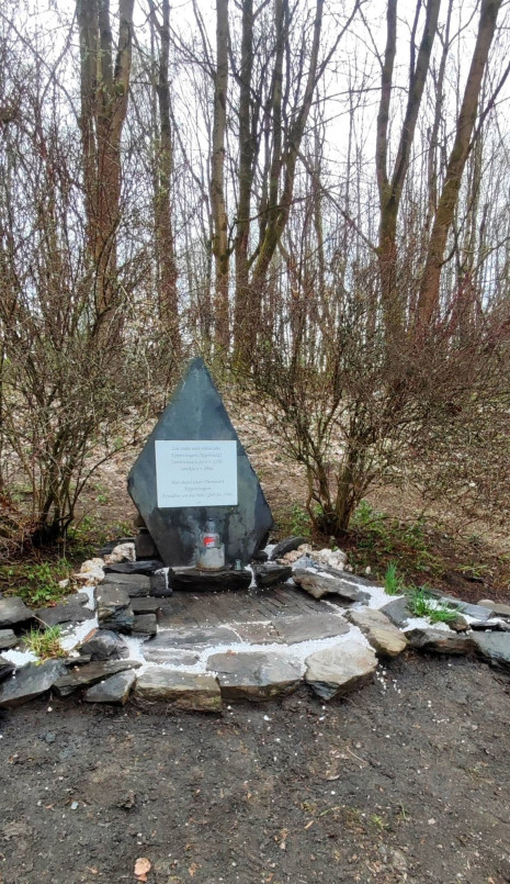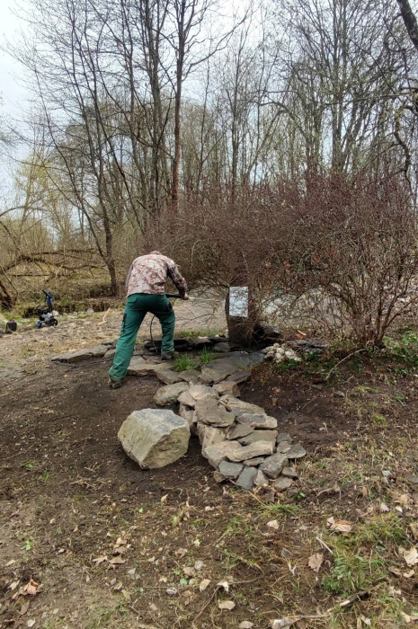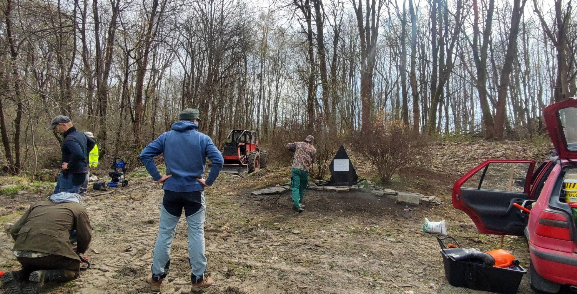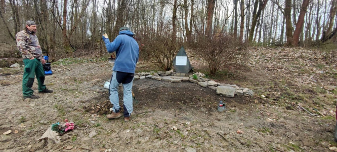 Prostor okolo památníku je oblíbeným místem divočáků, proto je potřeba jej upravovat průběžně. Aktuálně je plocha kolem rozjezděna technikou, vzhledem k tomu, že se nachází na křižovatce a probíhají zde lesní práce. Dnes došlo na rozebrání kamenů položených okolo, vyčištění památníku vapkou, vyhrabání listí zpod akátů, které lemují památník z obou stran. Následně jsme odkopali trávu a mechy před památníkem, znovu vyskládali lemující kameny a vysypali mezery drceným mramorem. Památník je nyní opět důstojnou dominantou zaniklé obce.
