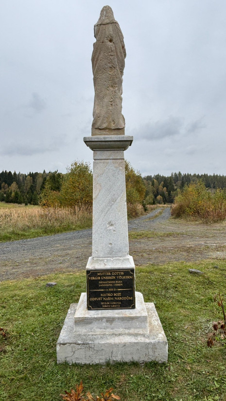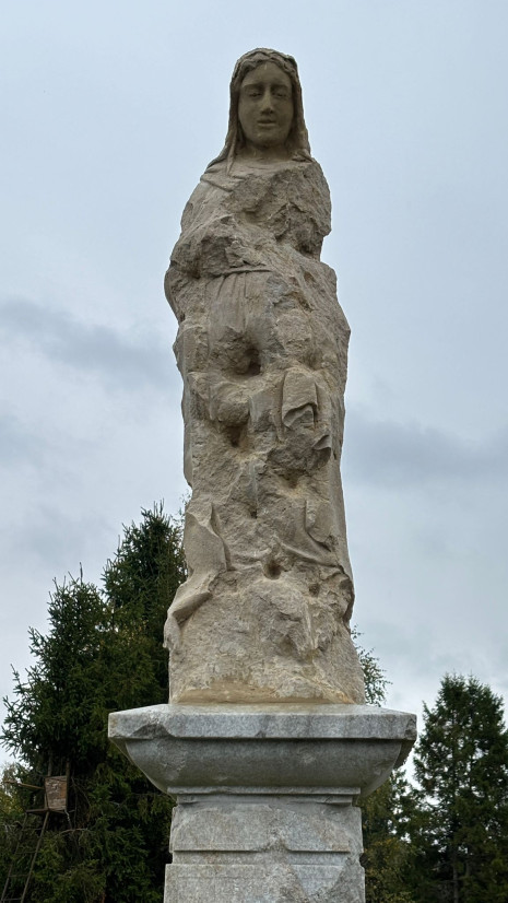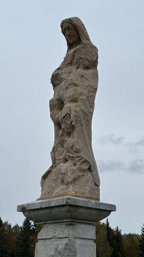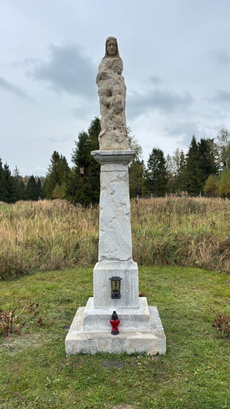 Socha Panny Marie představovala Ježíšovu matku Marii shlížející z výšky a držící v rukou malého Ježíše. Socha z hořického pískovce se nachází v krajině (zde) u křižovatky starých polních cest ve VVP Libavá v Oderských vrších. Je sice z důvodu poškození od střelby zachována jen jako torzo, ale přesto má velké kouzlo.
