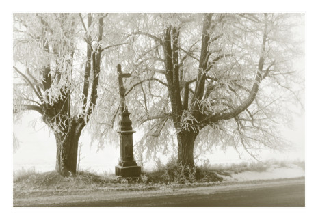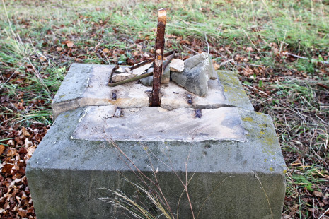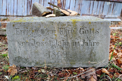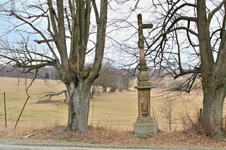 Poškozený pískovcový kříž z r.1869, věnovaný Josefem Jáhnem, byl postupně rozebrán a odvezen do Města Libavé. Kříži bohužel ubližovaly i pod poryvy větru padající větve mohutných lip, které stály v jeho blízkosti.