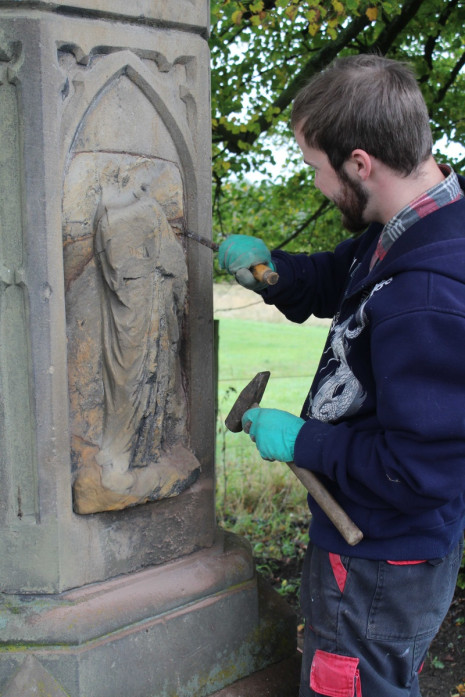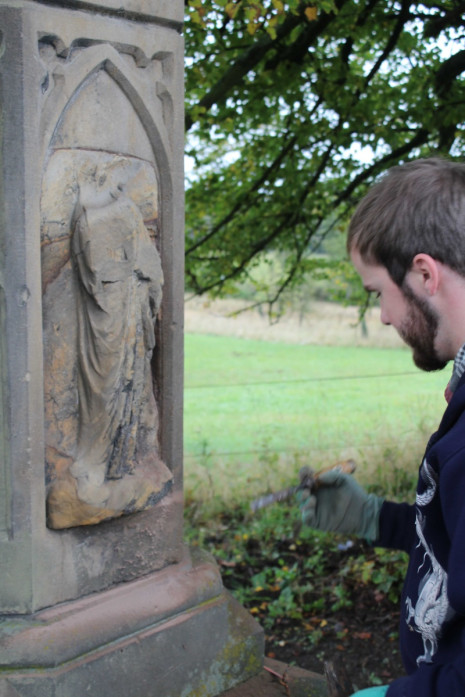 Byly započaty práce na renovaci pietního místa Jahnova kříže i oprava samotného kříže.