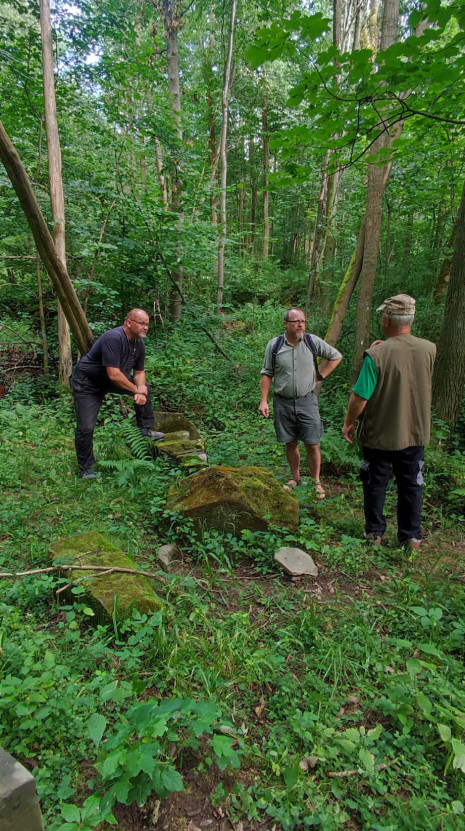 Seznamovací obhlídka pozůstatků kamenného kříže kameníkem přímo v zaniklé obci Varhošť (Haslicht).