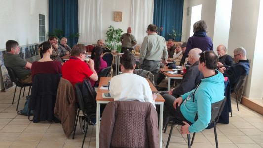 Soňa a Víťa referovali o stavu příprav na Bílý kámen, a Jarda seznámil přítomné členy s programem akce na společné setkání v Pohořanech ke konci května.