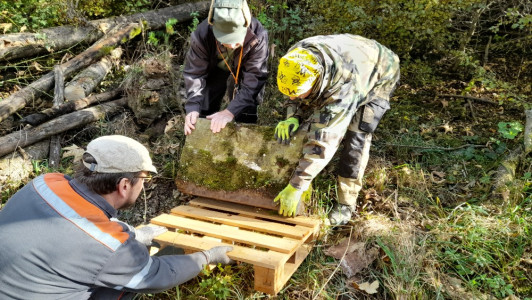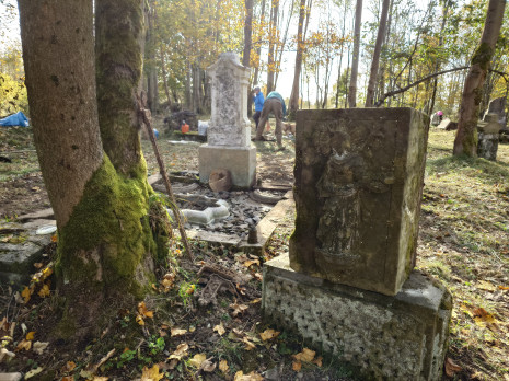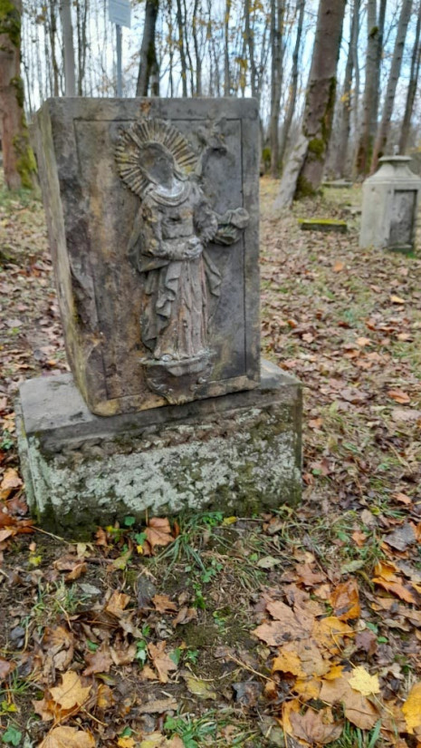 Kdo je na stéle, kterou se v rámci brigády na Čermné podařilo vyprostit z křoví kraje hřbitova a umístit na podstavec u vstupu na hřbitov? Mohlo by se jednat o Pannu Marii Bolestnou?