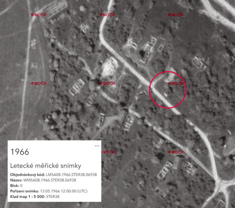 Na leteckém měřickém snímkování je vidět, že v roce 1966 kaple ještě má střechu, na snímku z roku 1971 je již kaple (a celá obec) zdemolována. Polohu kaple v obci najdete zde.