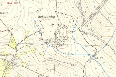 Lokace zaniklé obce Heřmánky (Herrnsdorf, Hermsdorf) na Mapách.cz