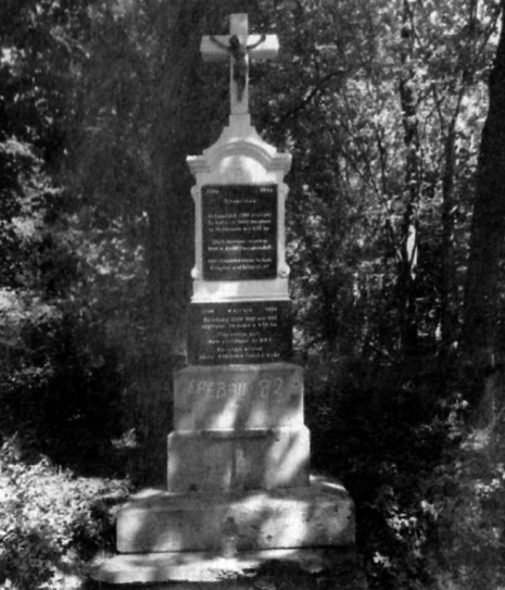 POZNÁMKA: Kromě německého a českého textu jsou v soklu pomníku do kamene vysekána písmena v cyrilském písmu: „JEREVAN 82“. Pravděpodobně některý ruský voják toužil po své vlasti. K tomu mínil Jindřich Machala: „Také oni patří k historii této zbídačené vesnice.“