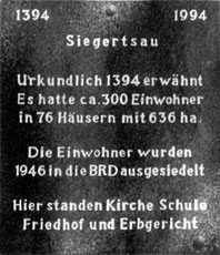 Mramorový kříž a sokl z pískovce, zřízené Alois-em Potsch-em v r. 1994 byly pokryty lišejníkem a mechem, a pozlacený nápis byl sotva čitelný. Po dvou dnech práce je to nyní opět důstojný svědek naší německé historie ve zničených Zigarticích/Siegertsau. Nejsem smutný z toho, že mi nikdo nepomohl. Práce k uctění našich předků mi činí velké potěšení. A rád pro to obětuji peníze a volný čas. Co mne však trápí je to, že už není zájem navštívit vlast našich předků, neboť příležitost k tomu je lepší, než kdykoliv předtím!